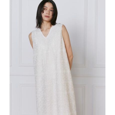 オリジナルの幾何学柄レースが主役級のワンピース。すっきりとしたVネックでスタイリングしやすいサイジングに仕上げています。上品な光沢感があり、華やかない印象なので、きちんと見えを狙いたい日にも活躍します。1枚で着用できるデザインですが、季節の変わり目には、インナーをレイヤードしジャンパースカート風の着こなしもおすすめです。・裏地あり・後ろファスナーあり■サンプル撮影商品■こちらの商品はサンプルでの撮影となっております。実際の商品とは、サイズや色味、素材、デザイン等の仕様が若干変更になる場合がございます。