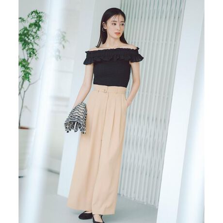 ウエストの後ろはゴムでイージーにはけるリラクシーパンツ。華奢な共地リボンベルトで優しくウエストマークするハイウエストデザインです。裏地を無くしており、表側はドライタッチながら、内側はサテンのつるりとした肌触りを感じるはき心地に。肌離れするワイドシルエットなので夏も涼しく着ていただけます。<素材>表はドライタッチで、裏はサテン面が肌触りの良い合繊素材を使用しています。<詳細>仕様・前ファスナー裏地・なし透け感・なし / 光沢・なし / 伸縮性・ややあり生地の厚さ・普通※モデルの着用画像の場合、光の当たり具合により、実際の色味と異なって見えることがございます。色味は、商品単体の画像をご参照ください。