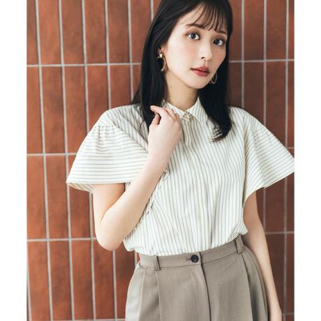 二の腕を隠しながらこなれた印象に見せてくれるワンテクシャツ。フレアスリーブは袖下を接ぎにすることで、袖まわりは丁度良いボリューム感のフレアスリーブデザインに。ドロップしたフレアスリーブが甘くなりすぎず、キレイ目な印象で普段からオフィスシーンまで幅広く着ていただけます。襟は第一ボタンにゴールドカラーのギボシ(釦)を付けているので、顔まわりを華やかに見せてくれます。<素材>ハリのあるシャツ素材を使用しています。無地とストライプ柄の3色展開。<詳細>仕様・前ボタン裏地・なし透け感・なし / 光沢・なし / 伸縮性・なし 生地の厚さ・普通※モデルの着用画像の場合、光の当たり具合により、実際の色味と異なって見えることがございます。色味は、商品単体の画像をご参照ください。