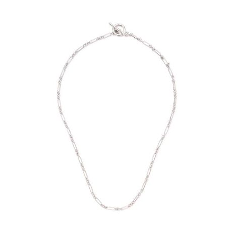 シルバーカラーがスタイリッシュな雰囲気のチェーンネックレス。程よい大きさのチェーンなので、カジュアルにもキレイめにも合わせやすいデザイン。留め具はマンテルなのでラクに装着できます。
