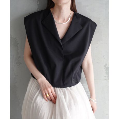 セットアップでの着こなしだけでなく、普段のデニムスタイルやスカートに合わせるだけでもショートレングスで目線が持ち上がり脚長効果に繋がります◎。インにシアーカットソーなどを重ねるアレンジもお勧めです。