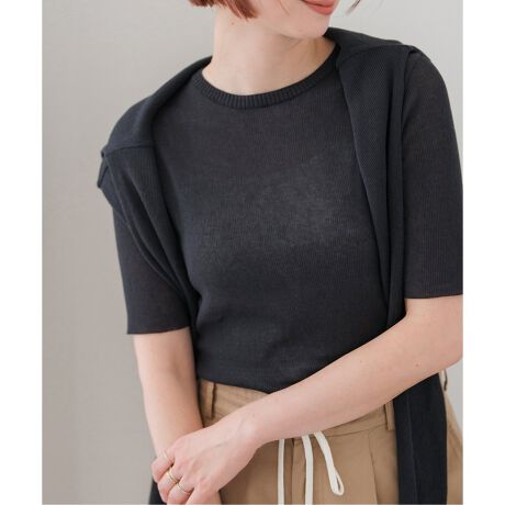 繊細な糸を18Gでリブ編みし、上品な表情と肌触り良いシアー感ある編地に仕上げています。