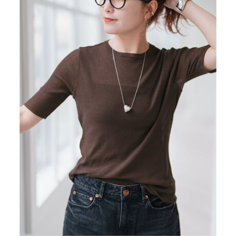 繊細な糸を18Gでリブ編みし、上品な表情と肌触り良いシアー感ある編地に仕上げています。
