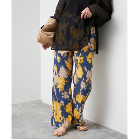 装いに華やかニュアンスをあたえてくれるフラワーモチーフイージーパンツ。