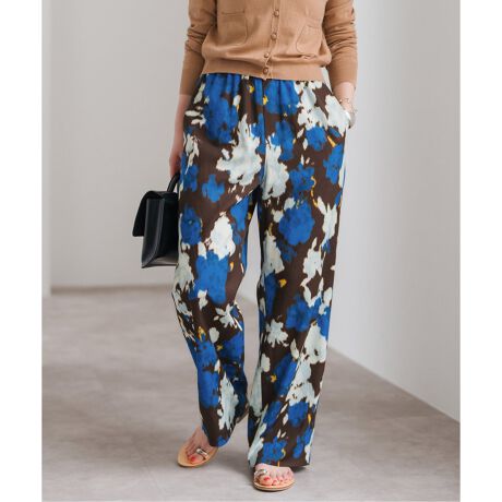 装いに華やかニュアンスをあたえてくれるフラワーモチーフイージーパンツ。
