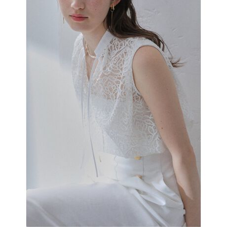 レースの素材感が肌に映え、華やかな印象を与えてくれる一枚です。