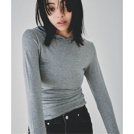 コンパクトなサイズ感のフーディーカットソー。