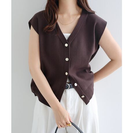 メタルボタン ノースリーブ ニット トップス