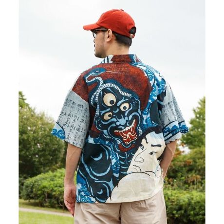 日本の美をまとうNIPPON ARTシリーズのアロハシャツ。浮世絵をモチーフにリデザインした和の意匠が印象的です。刺し子のような風合いを持つコットンドビー生地を使用し、さらりとした着心地に仕上げました。がしゃどくろや猫、兎など多彩な柄展開で、M・L・XLの3サイズ展開。性別を問わず楽しめる上品な和柄シャツです。