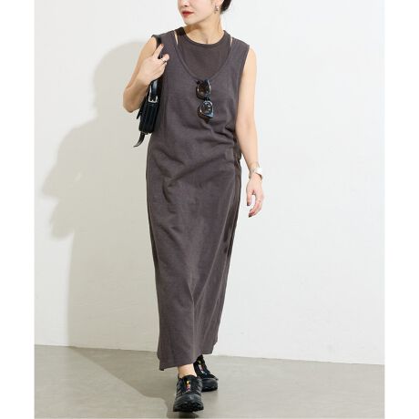 表情感のあるスラブの天竺でおつくりした、前後着用可能なワンピース。前後で開きの深さを変えているので、気分によって着方に変化がつきます。アームホールもざっくりと大きめに設定しているのでインには同シリーズのタンクなどを合わせて涼しく着こなせます。