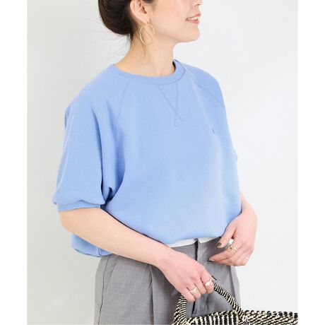 環境に配慮して生産されたサステナブルなアメリカ綿とリサイクルポリエステルを使用した、裏毛スウェット素材のショートスリーブスウェットシャツです。柔らかさと適度な量感による着心地の良さが特長です。ラグランスリーブで、身幅とアームホールにゆとりを持たせたリラックスフィット。袖のパフスリーブがデザインポイントです。左胸にCロゴを身生地同色で刺繍しています。製品洗い加工による肌馴染みの良い快適な風合いと、洗濯後の縮みにくさも特長です。