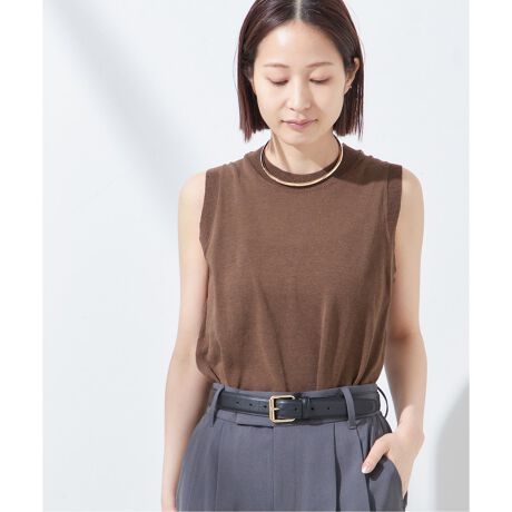 さらりとしたリネン混の素材でお作りしたサマーニットのノースリーブトップス。