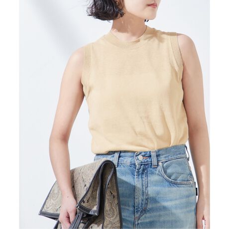 さらりとしたリネン混の素材でお作りしたサマーニットのノースリーブトップス。