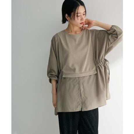 ベストとシャツをレイヤードしているようなこなれた印象のチュニックプルオーバー。ゆったりとしたシルエットで着心地よく、サイドリボンを調節してお好みのシルエットに変えられるのも魅力的です。腰までかかる長めの着丈でスタイルアップ効果にも期待。スキニーやワイドボトムなど様々なボトムと相性よく、デイリーに活躍してくれるおすすめのアイテムです。透け感[ややあり]