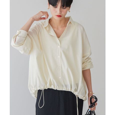 爽やかなカラーリングがコーディネートに映えるデザインシャツ。ゆったりとしたサイジングながらも、裾ドロストでメリハリを加えたおしゃれな1着です。バックのたっぷりギャザーから広がるフレアなシルエットもフェミニンなアクセント。シンプルだからこそこだわりのディテールがぱっと目を惹く魅力的なアイテムです。洗濯してもシワが付きにくいイージーケア素材を使用。