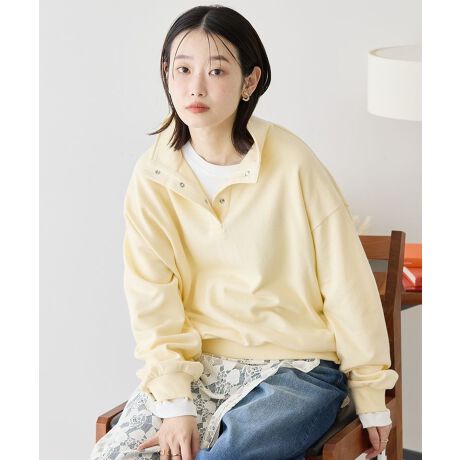 スウェットプルオーバー ハイネック ハーフボタン 刺繍アクセント 裏毛素材 ストレッチ性 カジュアル トップス プルオーバー 30代 40代 レディース カジュアル 春夏 25SS AMERICAN HOLIC AMERICAN HOLIC アメリカンホリック アメホリ