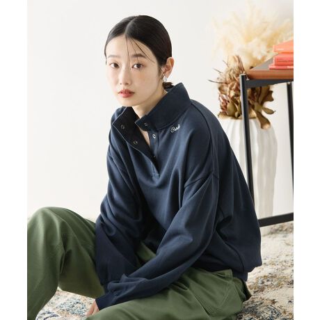 スウェットプルオーバー ハイネック ハーフボタン 刺繍アクセント 裏毛素材 ストレッチ性 カジュアル トップス プルオーバー 30代 40代 レディース カジュアル 春夏 25SS AMERICAN HOLIC AMERICAN HOLIC アメリカンホリック アメホリ