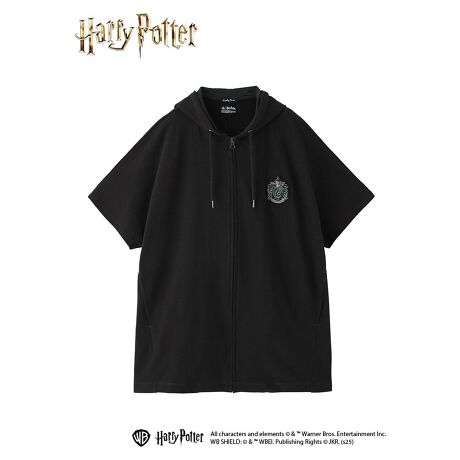 大人気シリーズ「ハリー・ポッター」のEASTBOY限定半袖ローブ風パーカ。ゆったりとしたサイズ感でよりローブ感がアップ。MとLのサイズ展開なのでメンズの方も着用していただけます。Tシャツの半袖が丁度隠れるくらいの裄丈なので、コーディネイトしやすいです。フード裏と見返し、ポケット袋布が寮カラーの配色になっています。左胸に各寮のワッペン付き。左裾にシルバーの女神刺繍入り。左身返し裏に杖ポケット付き。