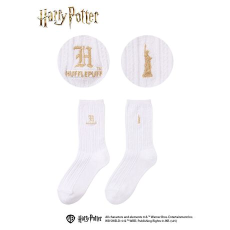 大人気シリーズ「ハリー・ポッター」のEASTBOY限定ソックス。4寮ごとのケーブル柄カラーソックスです。ゴールド刺繍とシルバー刺繍に分かれています。外側には寮ごとの刺繍、内側には女神刺繍入りです。