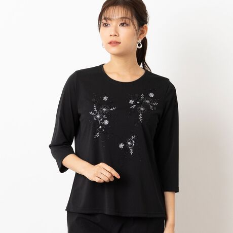 【洗える・日本製】ビーズ刺繍 カットソー