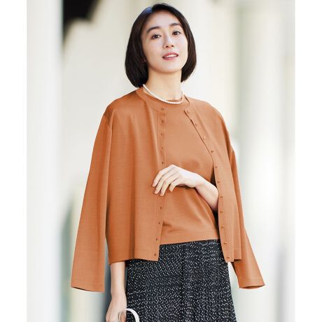 さりげない刺繍がポイントの上品なキレイめカーディガン■デザイン素材の持つ上品な光沢感を活かしたシンプルなカーディガンです。クラシックな雰囲気になりすぎないように、少しだけ肩をドロップさせリラックスしたシルエットに仕上げています。アクセサリー感覚の華奢で小さなメタル釦は間隔を狭めて配置し、自由区のオリジナリティを感じさせるディテールです。同素材のプルオーバーニット(KRW7GM0358)とアンサンブルでの着用がおすすめです。ロンドンにある花屋Matsurika Flowers(マツリカフラワー)とのコラボレーションアイテムで、左袖の袖口辺りに色別でお花の名前が英語で刺繍されております。レッド(010)カラー:刺繍「gerbera」、意味「ガーベラ」グラスグリーン(062)カラー:刺繍「daffodil」、意味「水仙」【Matsurika Flowers】ロンドンを拠点に活動する日本人フローラルデザイナーMariko KinoshitaさんによるMatsurika Flowers。花が持つナチュラルな美しさを生かし、世界の歴史やカルチャーを着想源に、ビンテージとアンティークを組み合わせたスタイルが人気です。ウェディングやイベントでフラワーアレンジメントを手がけるほか、ワークショップも開催しています。■素材程よいハリコシと上品な光沢が特徴で、ソフトでシャリみのある発色が美しい素材です。表面はアセテートの繊細な光沢が女性らしく滑らかなタッチで、肌につく裏面は肌触りの良いコットン素材なので、通期にわたり着用できるアイテムです。■同素材アイテムプルオーバーニット(KRW7GM0358)
