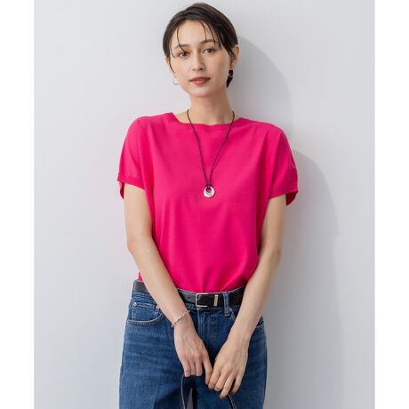 毎年人気の素材で作ったニットT。袖付け切り替えのないプルオーバーで、動きやすさとストレスフリーな伸縮性が抜群の着心地を叶えます。カジュアル過ぎない素材感と長めの着丈が大人にぴったりで、カジュアルスタイルにはもちろん、通勤スタイルのジャケットインとしてパンツにもスカートにも好相性。ほど良いフィット感で快適に過ごせます。カラーは、無地とボーダーの計13色と豊富な展開でオンオフ着回しやすく、何枚も欲しくなるラインナップです。無地は清潔感のあるホワイト(#001)・ベーシックなブラック(#005)・鮮やかなオレンジ(#020)・やさしい印象のベージュ(#033)・アクセントになるマスタード(#040)・洗練されたダークブルー(#065)・合わせやすいネイビー(#075)に、新色を加えて鮮やかなマゼンタ(#011)、印象的なピーコック(#061)・ニュアンス感のあるダークブラウン(#035)の10色展開。ボーダーはやわらかな雰囲気のベージュ×オフ(#133)・洒落感のあるダークブルー×ブラック(#165)・新色のベージュ×ブラック(#233)の3色展開です。