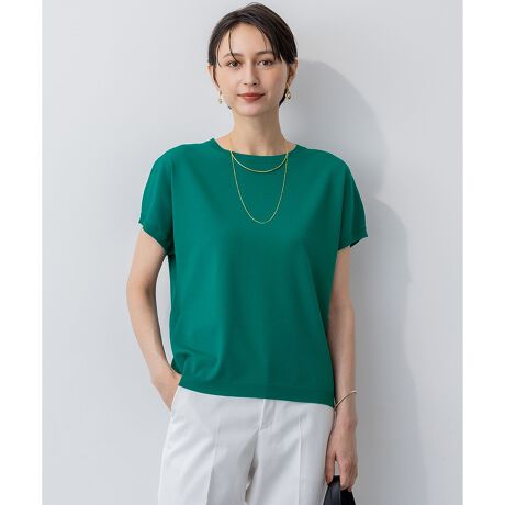 毎年人気の素材で作ったニットT。袖付け切り替えのないプルオーバーで、動きやすさとストレスフリーな伸縮性が抜群の着心地を叶えます。カジュアル過ぎない素材感と長めの着丈が大人にぴったりで、カジュアルスタイルにはもちろん、通勤スタイルのジャケットインとしてパンツにもスカートにも好相性。ほど良いフィット感で快適に過ごせます。カラーは、無地とボーダーの計13色と豊富な展開でオンオフ着回しやすく、何枚も欲しくなるラインナップです。無地は清潔感のあるホワイト(#001)・ベーシックなブラック(#005)・鮮やかなオレンジ(#020)・やさしい印象のベージュ(#033)・アクセントになるマスタード(#040)・洗練されたダークブルー(#065)・合わせやすいネイビー(#075)に、新色を加えて鮮やかなマゼンタ(#011)、印象的なピーコック(#061)・ニュアンス感のあるダークブラウン(#035)の10色展開。ボーダーはやわらかな雰囲気のベージュ×オフ(#133)・洒落感のあるダークブルー×ブラック(#165)・新色のベージュ×ブラック(#233)の3色展開です。
