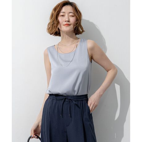 女性らしく品のあるサテン素材のタンクトップ