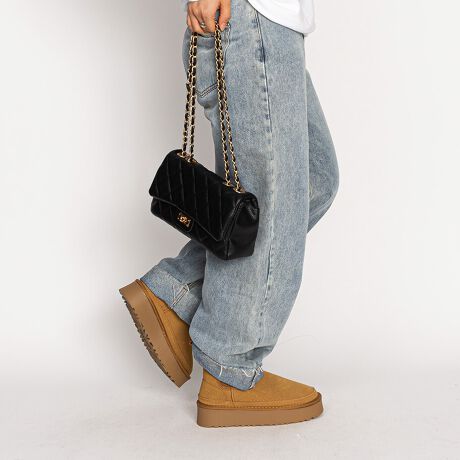 サイドゴアとプルタブで脱ぎ履きがしやすいムートンブーツ。