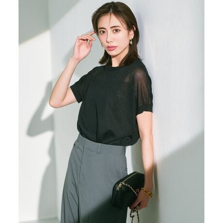 シンプルなドルマンデザインのニット。シアーな編地切り替えを入れて華やいだイメージにブラッシュアップしました。気になるボディのラインはカバーしつつ、着心地抜群なイージーニットです。ワイドパンツと合わせればマニッシュに、スカートと合わせればフェミニンに、程よい存在感でスタイリングが決まる万能アイテム。 カラーは、抜け感のあるアイボリー(#003)、ベーシックなブラック(#005)、やわらかなベージュ(#033)、こなれ感のあるダークブラウン(#035)、爽やかなスカイブルー(#072)の5色展開です。