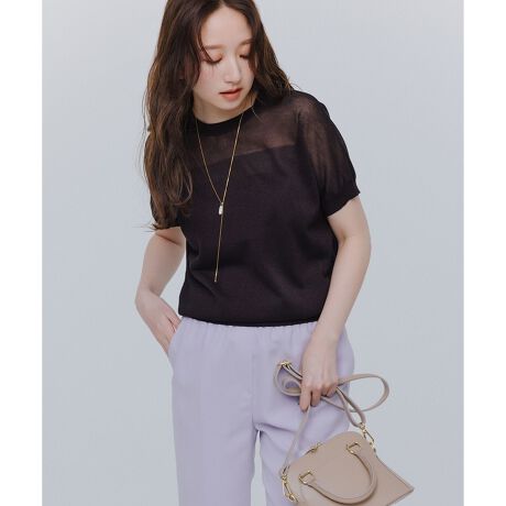 シンプルなドルマンデザインのニット。シアーな編地切り替えを入れて華やいだイメージにブラッシュアップしました。気になるボディのラインはカバーしつつ、着心地抜群なイージーニットです。ワイドパンツと合わせればマニッシュに、スカートと合わせればフェミニンに、程よい存在感でスタイリングが決まる万能アイテム。 カラーは、抜け感のあるアイボリー(#003)、ベーシックなブラック(#005)、やわらかなベージュ(#033)、こなれ感のあるダークブラウン(#035)、爽やかなスカイブルー(#072)の5色展開です。