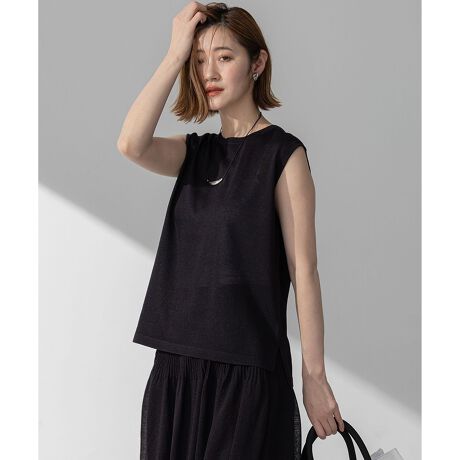 天竺編みのノースリーブプルオーバー。少し肉感を持たせることで透け感を減らしています。体のラインを拾わず、一枚でも着用していただけるのはもちろん、キャミソールワンピースやオールインワンの中にも合わせやすいようシンプルに仕上げました。シンプルながら、汎用性の高いアイテムです。カラーは、抜け感のあるアイボリー(#003)、ベーシックなブラック(#005)、やわらかなベージュ(#033)、こなれ感のあるダークブラウン(#035)、淡いカラーが女性らしい新色のピンク(#012)の5色展開です。