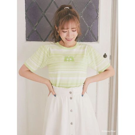 『モンスターズ・インク』に登場する「マイク」をイメージした配色のマルチボーダー柄ニット。