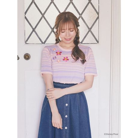 『モンスターズ・インク』に登場する「ブー」をイメージした配色のマルチボーダー柄ニット。