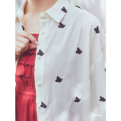 「ミッキー」の横顔を刺繍で施した高級感◎のシアーシャツが登場。