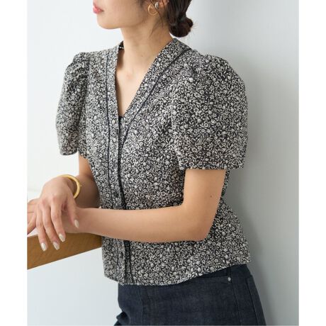 モノトーンの小花柄が大人可愛いブラウス。