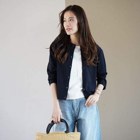 ・ややショート丈、袖口や裾をスッキリと仕上げ、ジャケットのようなきちんと感をプラス。