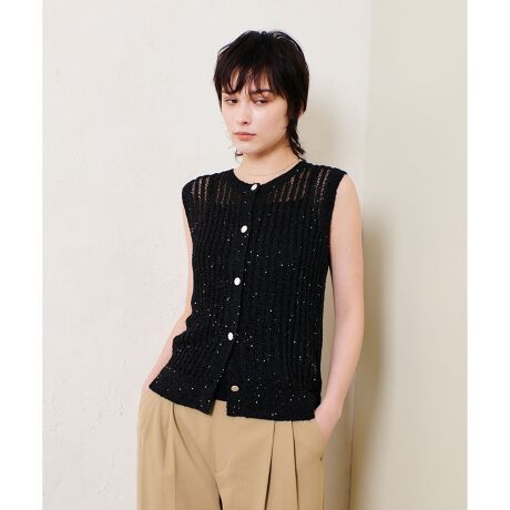 艶やかな糸に、キラキラとスパンコールを絡ませて。メッシュの様に涼やかに仕上げたジレプルオーバーです。
