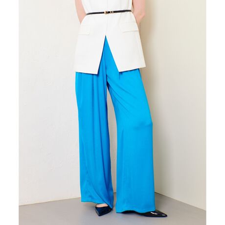 鮮やかなカラーで初夏の到来を感じさせてくれるリゾーティーなサテンのイージーパンツです。