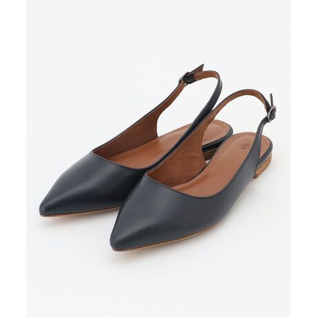 ■デザイン/素材ポインテッドトゥのバックストラップサンダルです。ストラップ部分は着脱しやすく、歩行時にもずれにくいゴム付きとなっております。ヒールは1.0cmと低いので、足に負担がかかりにくく、歩きやすいデザインです。アッパーの素材はブラウンとネイビーにはカウレザー、シルバーにはシープレザーを使用しており、高級感を演出しています。足に当たるライニングには人工スエードを使用しており、肌触りの良さが特徴です。中底の芯には足当たりの良いスポンジ芯と、足に馴染みやすくフィット感が増す厚みのある低反発素材の2つの芯材を採用しております。本底は軽く柔らかい、発泡性の高い素材を使用し歩きをサポートしてくれます。