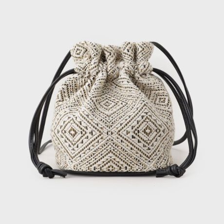 エスニックな雰囲気が漂う幾何柄模様の巾着バッグ。
