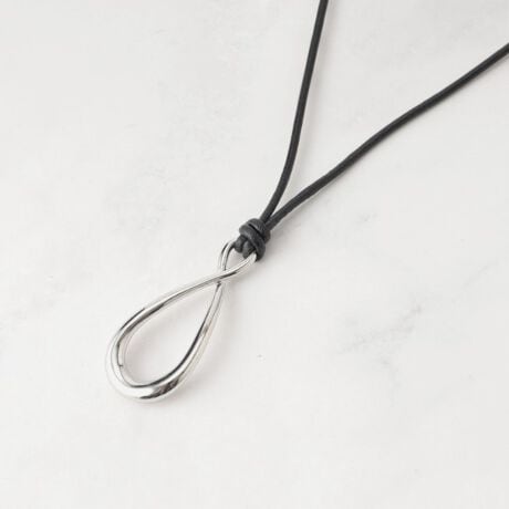 メタルのトップとナチュラルなコードの首紐の組み合わせが控えめな優しい印象です。