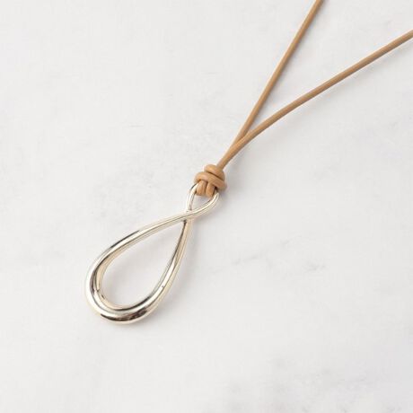 メタルのトップとナチュラルなコードの首紐の組み合わせが控えめな優しい印象です。