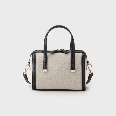 キャンバス生地と合皮がコンビになったコンパクトなミニショルダーバッグ。