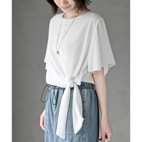 前結びリボンフレアー袖ブラウス