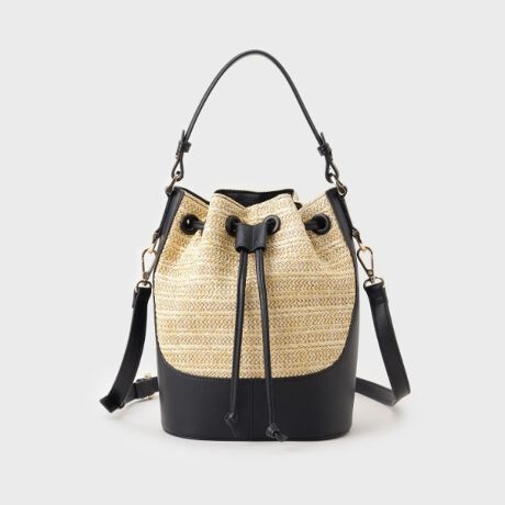 雑材と合皮がコンビになったデザイン巾着タイプ。