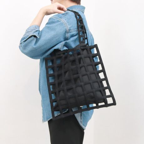 ラティスのように編まれたユニークな手法のトートバッグ。