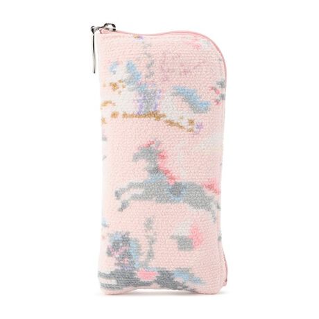 ペールトーンでまとめた、かわいい世界観が魅力の「ラブラリーモクバ」のメガネポーチです。色違いの木馬を並べて、表情豊かに仕上げました。口が大きく開くL字ファスナーで、メガネの出し入れもしやすく仕上がっています。メガネ入れとしてはもちろん、文房具やコスメ道具などを入れるのにもおすすめ。ハンカチとセットでプレゼントにいかがでしょうか。