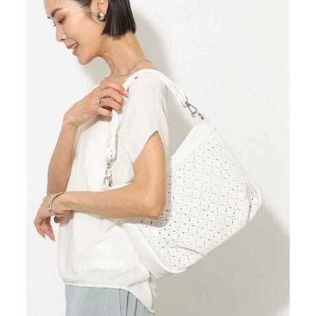 スパンコールのメタルを覗かせる、パンチングデザインが魅力のショルダーバッグです。