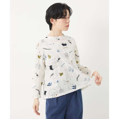 バスルームにまつわるアイテムをプリントにした、遊び心をくすぐる楽しいトップスです。